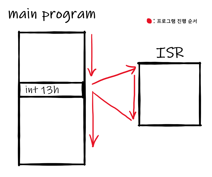 직접 작성한 프로그램이 아닌데, ISR의 위치는 어떻게 알 수 있을까요? BIOS ROM에 저장되어 있는 IVT( Interrup Vector Table )와 int 명령어의 오퍼랜드( operand )를 이용해서 ISR의 주소 값을 알 수 있습니다.