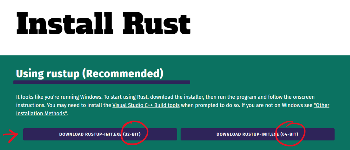https://www.rust-lang.org/tools/install 접속하기.