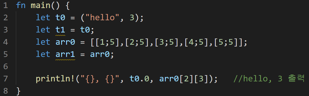 - copy trait의 변수 타입인 element만을 가진 tuple ( 튜플 )