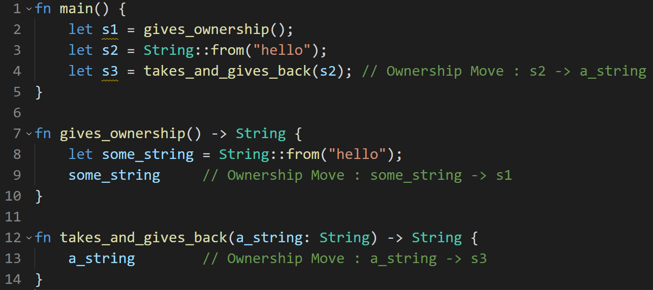 그럼 함수 매개변수와 반환 값에서의 Ownership ( 소유권 ) 관계는 어떻게 될까요?